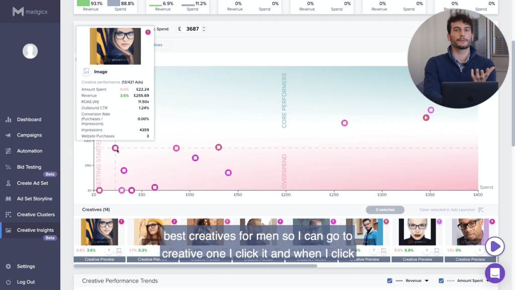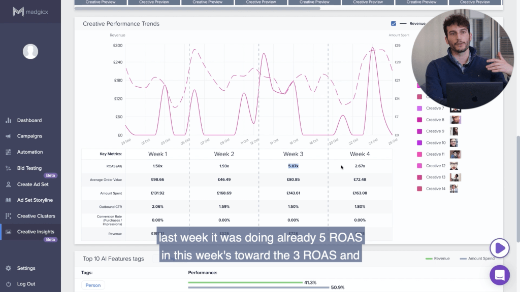 Madgicx,解放双手只是它的Basic profits,更大的优势在于提供insights,然后容易地、批量地上广告,通过 分析-调整 循环,让表现好的广告更优,最后规模复制。但是,优化的前提是投手们已经自己跑出了效果不错的广告、有不错的Creatives。
