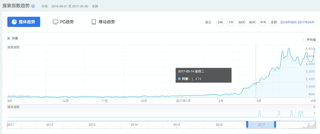 2017年12月底,抖音国内DAU到了17M。