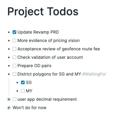 同时也打开自己的待办事项软件,自己和Team的事项应该是1对1,或1对N的关系,更新一下