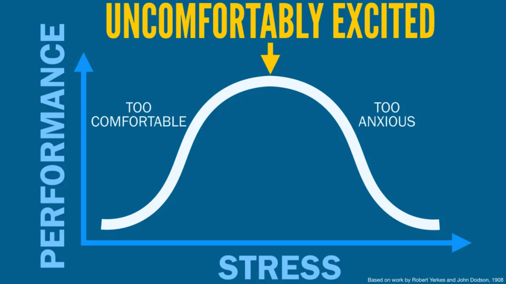 Ellington在怂恿Terry去一些未知,不舒服的地方。就像Barrett写道,煽动性是表示认可——Duke相信Terry超过了Terry相信他自己。他从始至终都在说Terry。我们知道自己在疲惫的时候状态不好,但是研究表明太舒适的时候表现更差。最佳状态是在甜蜜区,叫做“optimal anxiety”(最佳焦虑),在1908年这个概念被第一次认识。它普遍适用于生理健康和兴趣养成。这是Google的Larry Page说的“不舒适地兴奋”。