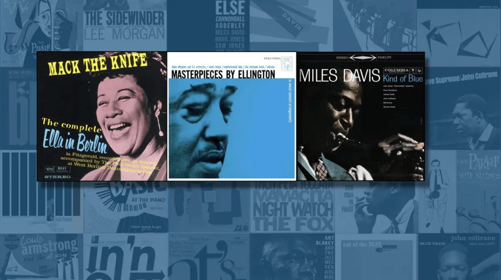 可能没有比常年销量第一的爵士乐唱片Miles Davis的Kind of Blue更好的例子了。1959年发行,至今仍然每周销售5000张。即使你完全不懂爵士乐,也可以听懂它的曲调。Miles把一群音乐家聚集起起来——次中音萨克斯手John Coltrane,中音萨克斯手Cannonball Adderley,钢琴演奏家Bill Evans和Wynton Kelly(他俩演奏不同的歌),低音提琴Paul Chambers,爵士鼓Jimmy Cobb,以及Miles Davis和他的小号。