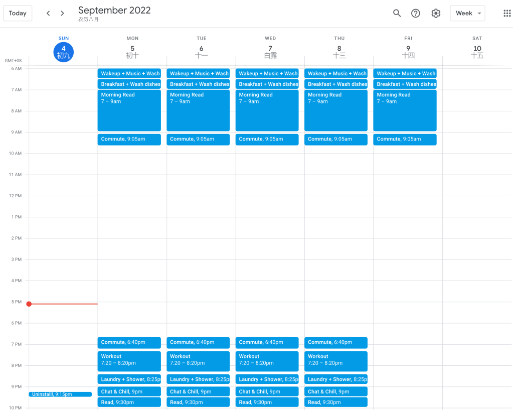 Everyday, I’ll spend more than an hour on commuting. I wish to use this time listen to audio lessons or Podcasts. But most of the time I can’t help scrolling on my phone and my brain ignores the lessons. I plan to uninstall these social media apps every Sunday night as a friction to use phone.