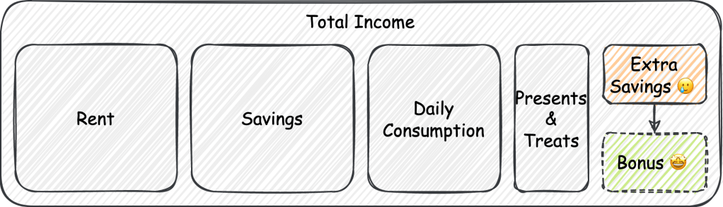 - Set up a tight “daily consumption” amount (less than I spend in the past months)